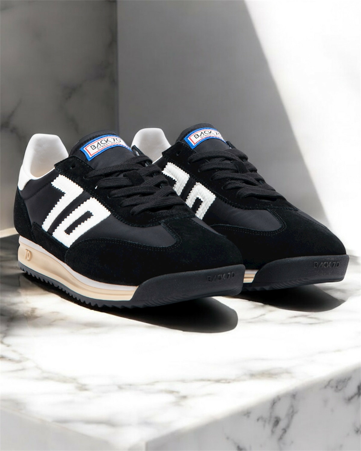 Tige en nylon souple et rembourrée avec détails en daim premium pour un contraste de texture.