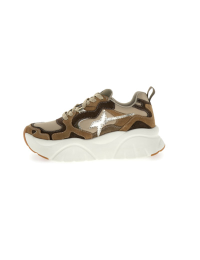 Silhouette chunky au look color‑block. Tige mêlant suède de vachettecuir écologique et nylon pour un mix de maintien, durabilité et respirabilité.