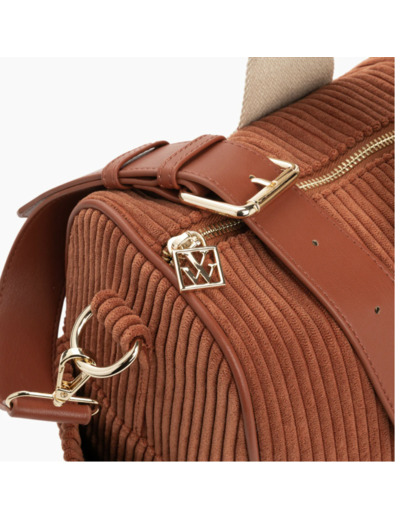 - Bandoulière amovible réglable en similicuir orange brique, à boucle et mousquetons dorés