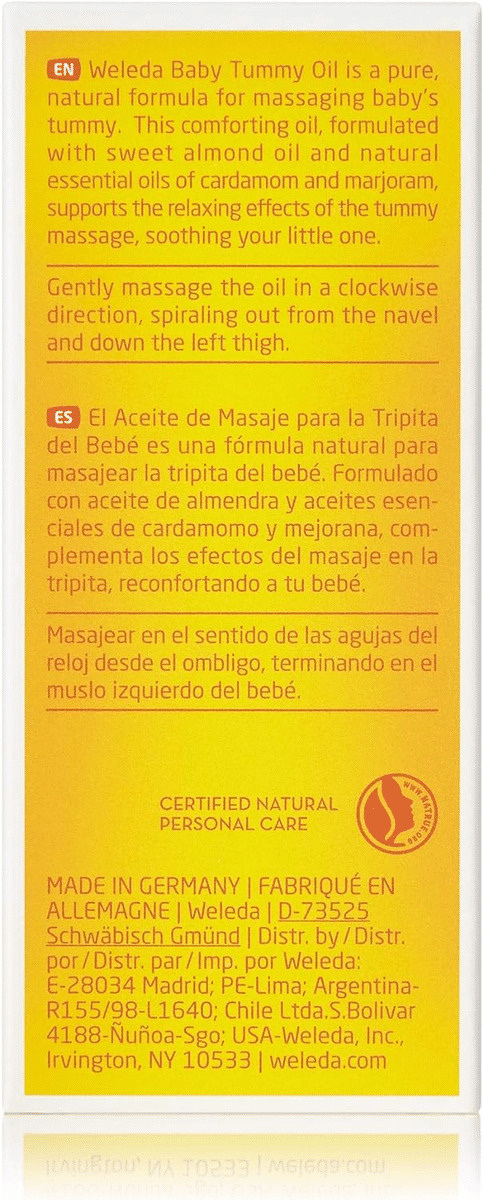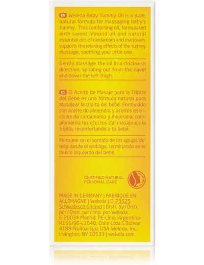 Spécialement conçue pour le réconfort et le soulagement de bébé nécessaire à son bien-être lors de la digestion, l'Huile de Massage Ventre de Bébé de la gamme Bébé de WELEDA à base d’huile d’amande douce conjugue les effets de la marjolaine, la camomille bio et la cardamome, trois plantes traditionnellement utilisées pour favoriser la digestion.