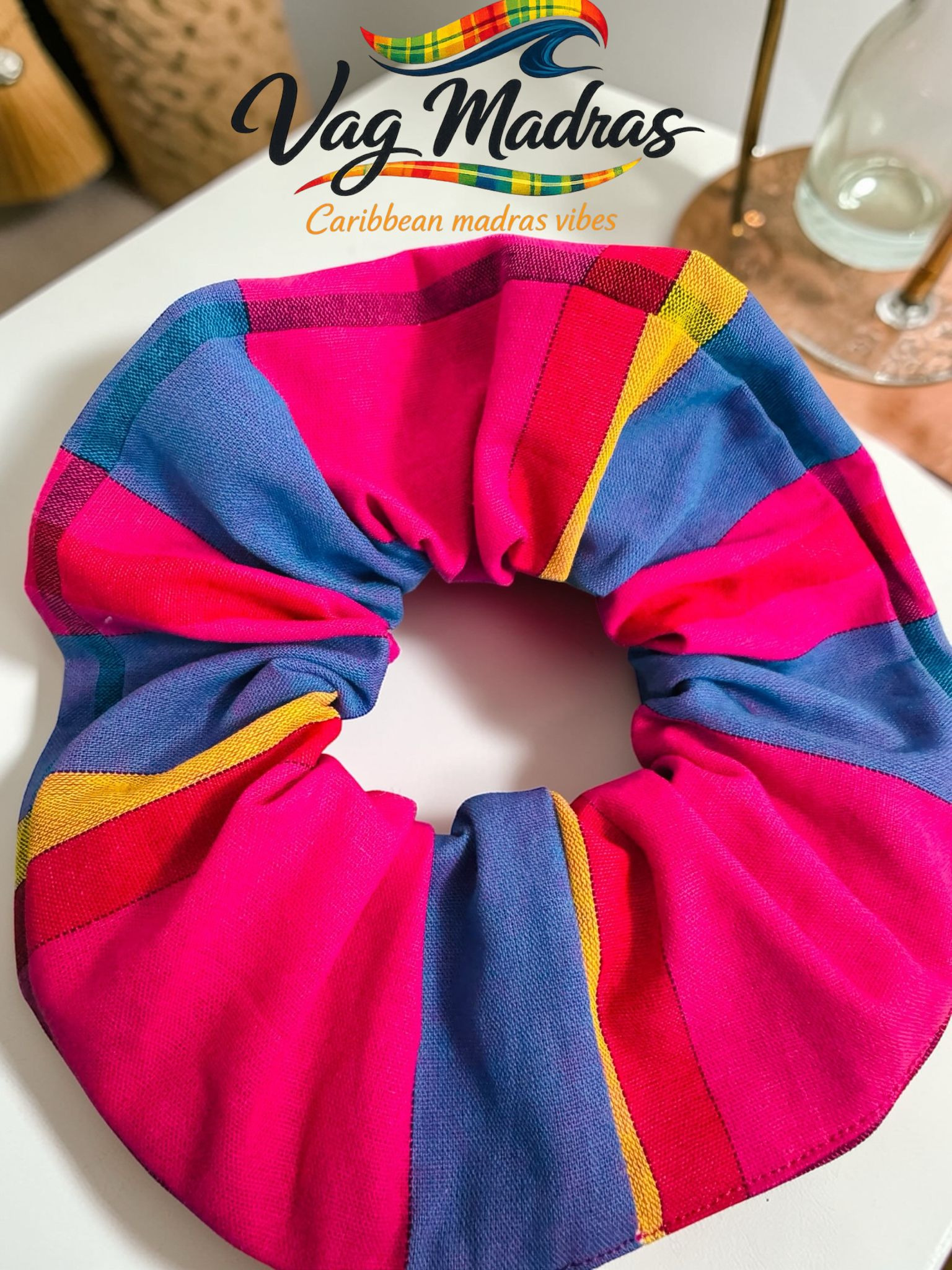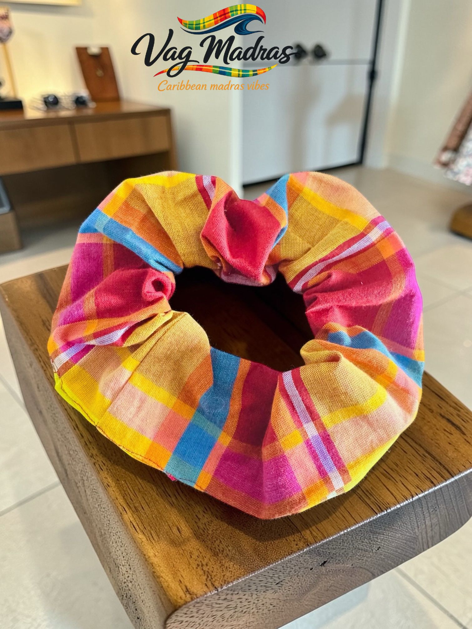 Ce chouchou, fabriqué en tissu madras, est non seulement esthétique, mais également pratique. Il maintient vos cheveux en place tout en préservant leur santé, grâce à son design doux et non agressif. Vous pouvez l'utiliser pour :