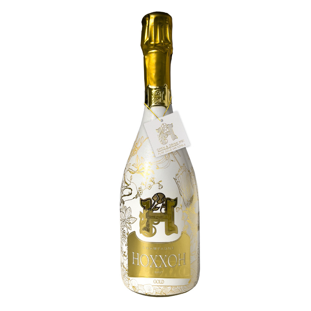 Chaque bouteille est livrée avec 6 feuilles d'or 24 carats comestibles. La bouteille elle-même est recouverte d'or 24 carats.