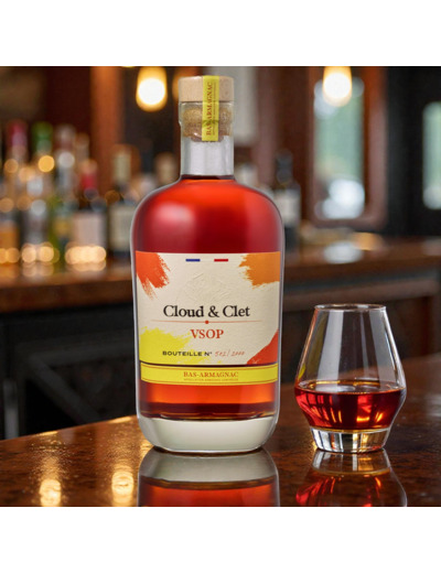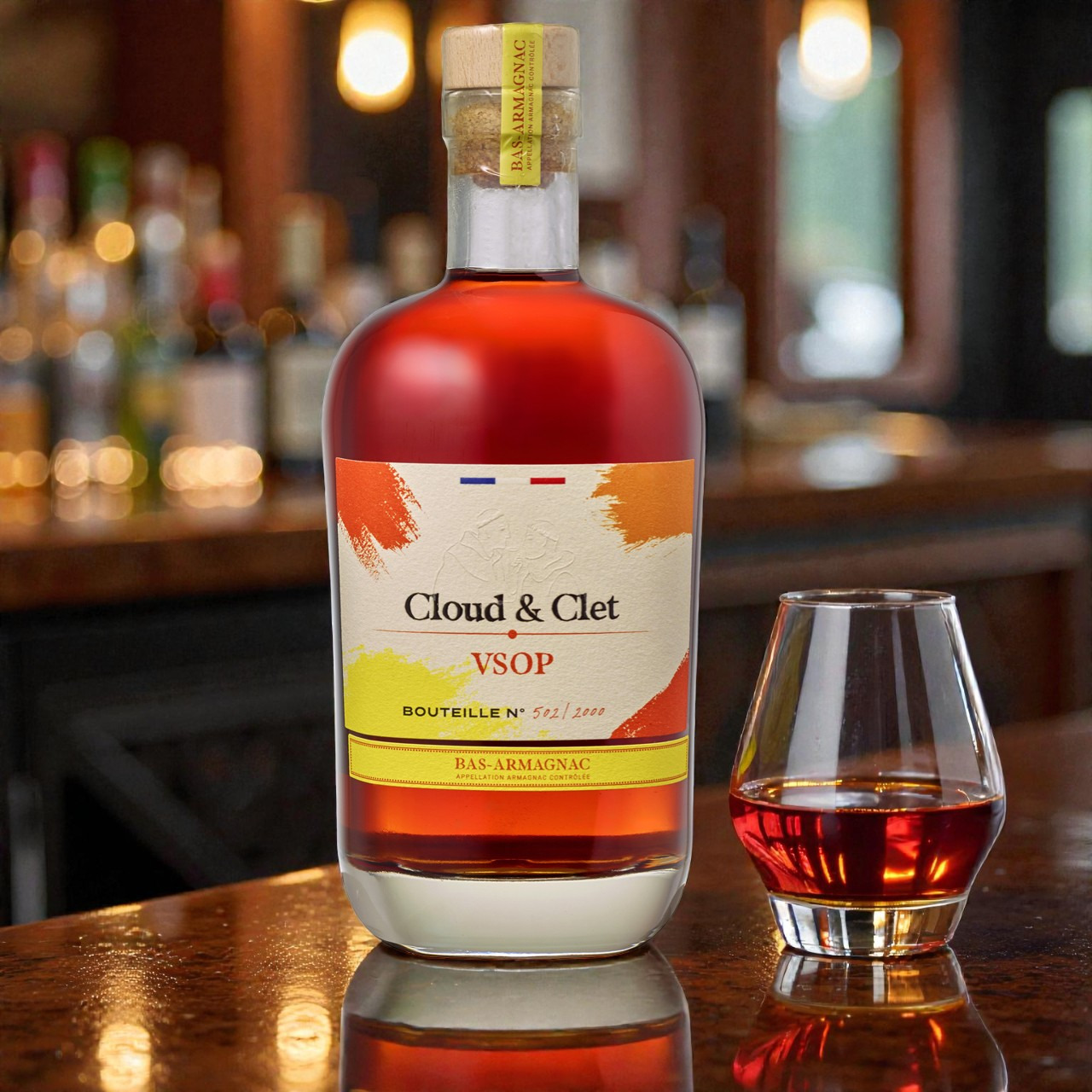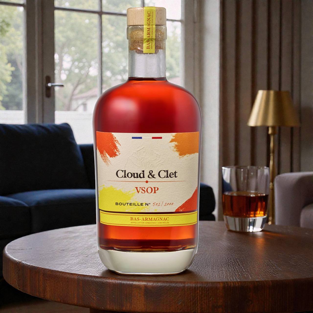 Avec VSOP, Cloud & Clet propose une lecture harmonieuse et raffinée du Bas-Armagnac. Vieilli au minimum six ans en chêne français, ce 100% Baco conjugue intensité aromatique et douceur de bouche.