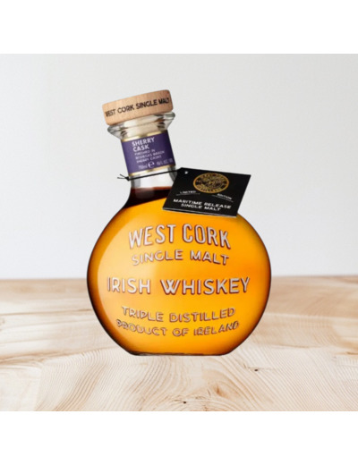Le West Cork Maritime Single Malt Sherry Cask est une expression raffinée de whiskey irlandais, issu de l’assemblage de vieillissements en fûts de bourbon puis affinés en fûts de sherry Bodegas Baron pour enrichir sa complexité aromatique. West Cork Irish Whiskey