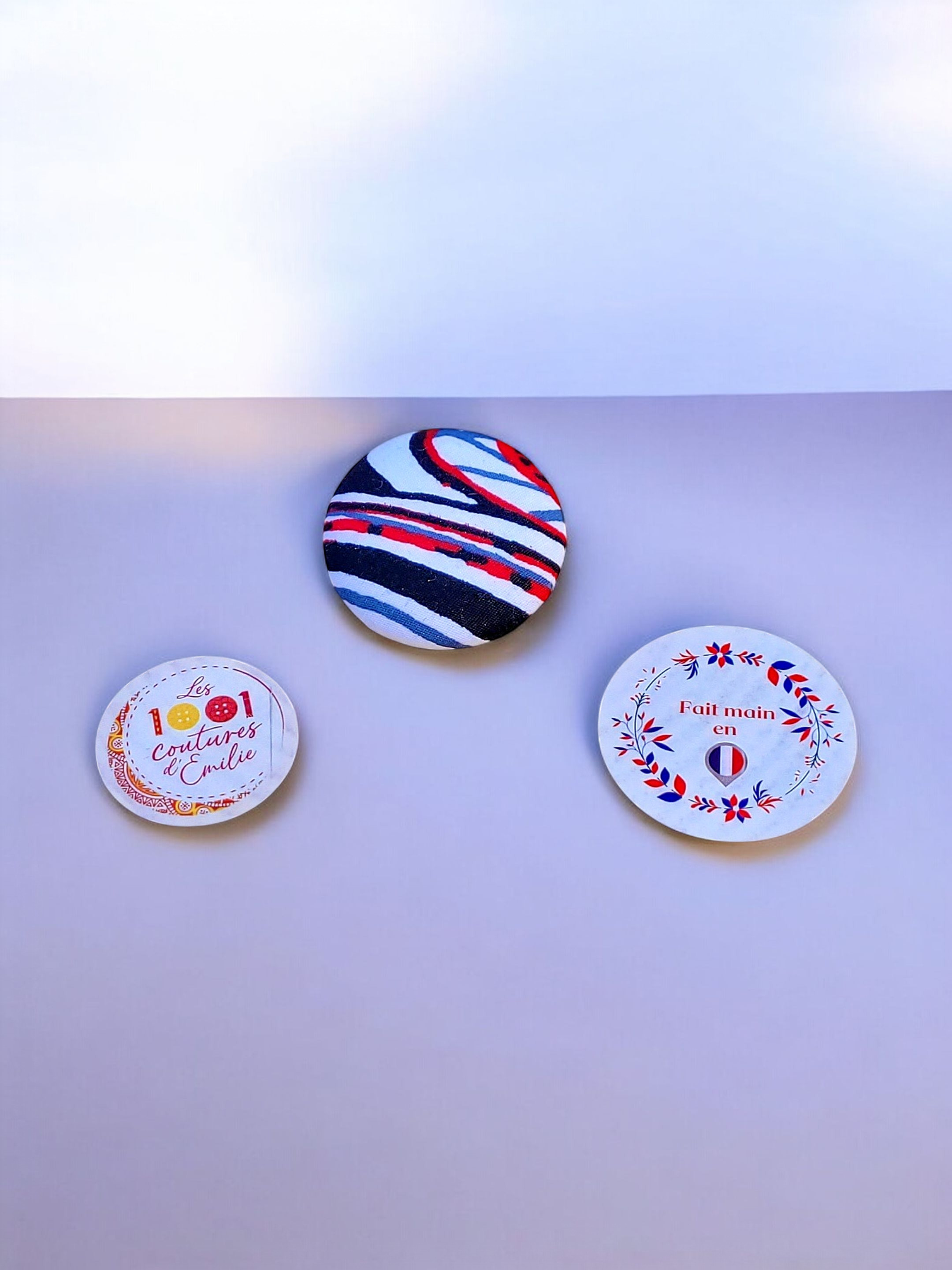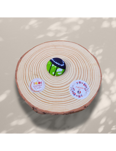 Découvrez ce badge bouton "Opatija", une pièce unique de la marque Les 1001 coutures d'Emilie, soigneusement réalisée à la main en France. Ce badge se démarque par son design contemporain et élégant, idéal pour ceux qui cherchent à ajouter une touche d'originalité à leur style.