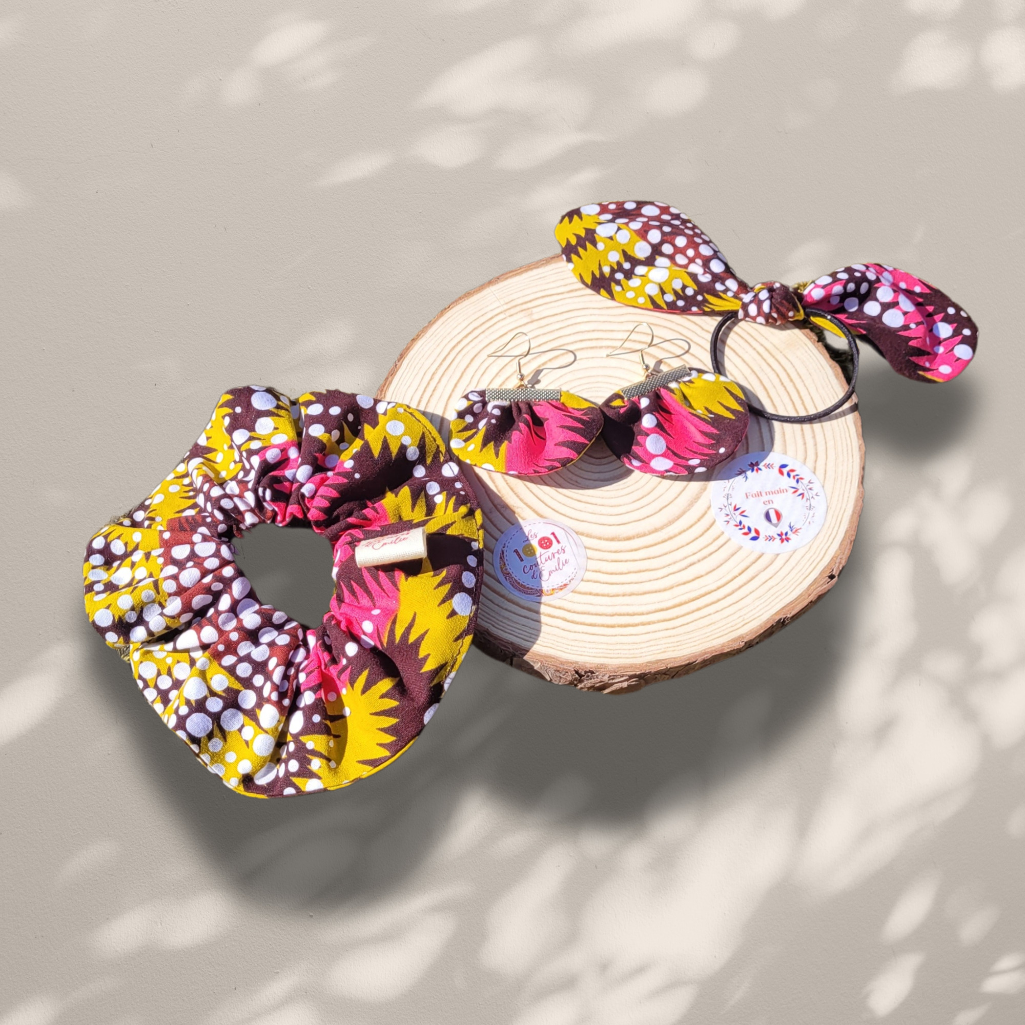 Découvrez le chouchou "Bruxelles", un accessoire pour cheveux artisanal qui allie style et qualité. Confectionné avec soin en tissu ethnique, ce modèle unique est la création emblématique de la marque Les 1001 coutures d'Emilie, fabriqué à la main en France.