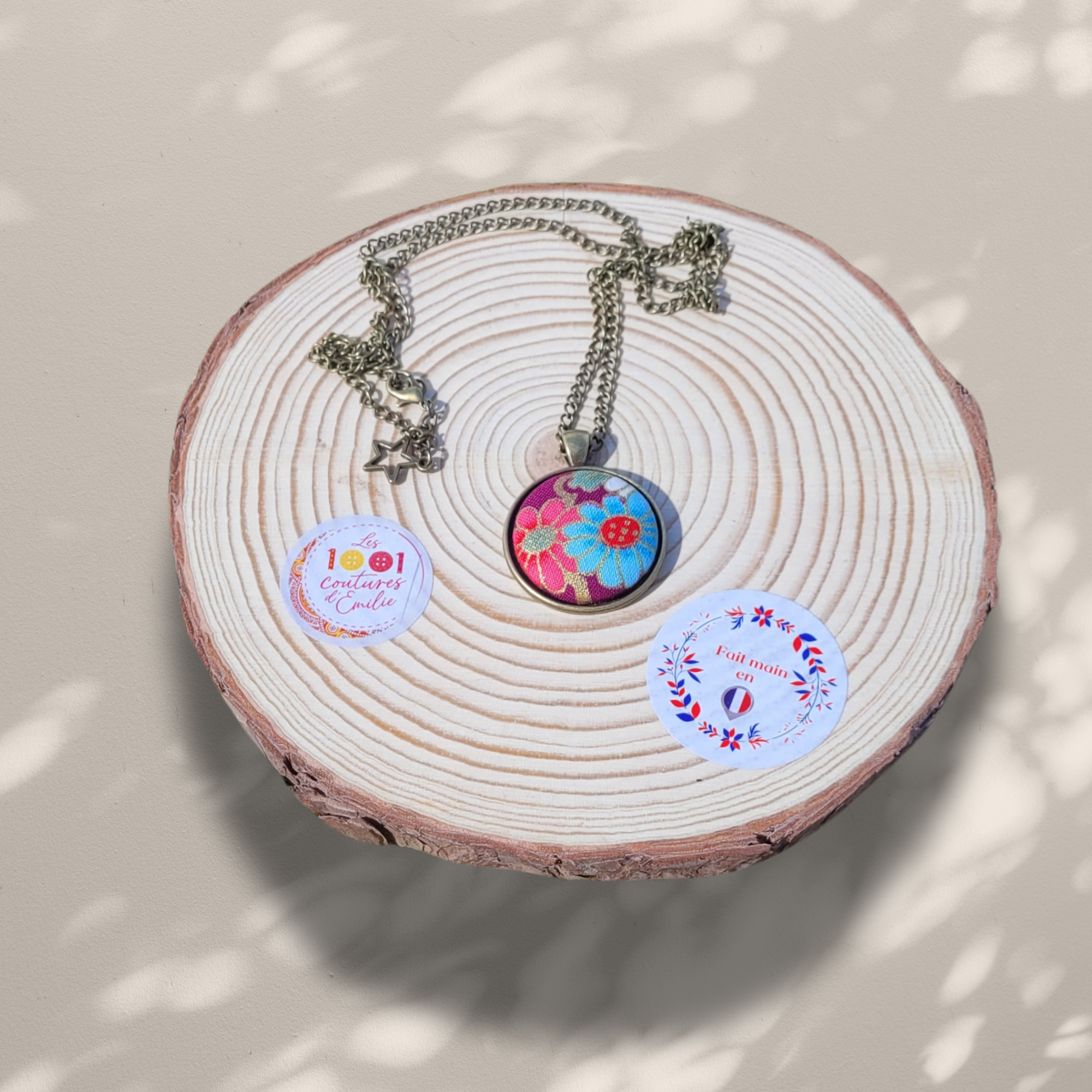 Ajoutez ce collier unique à votre collection et laissez votre style s'épanouir avec l'élégance du tissu japonais. N'attendez plus pour illuminer votre décolleté avec cette pièce magnifique !