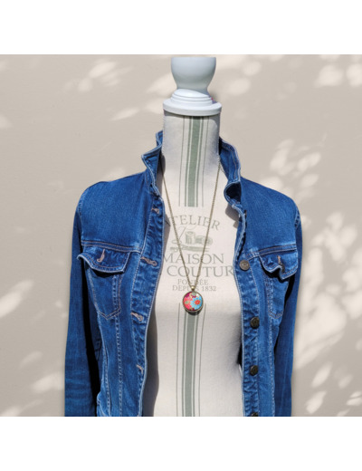 Ce sautoir se distingue par son bouton recouvert de tissu japonais fleuri dans des tons doux de rose, bleu et violet, parsemés de touches dorées. Ce mélange subtil de couleurs en fait un accessoire parfait pour enrichir votre collection de bijoux. Que ce soit pour une occasion spéciale ou pour un usage quotidien, le collier "Firenze" saura faire tourner les têtes.