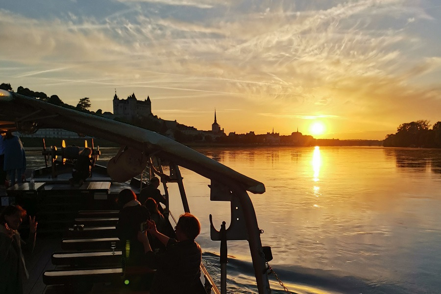 Découvrez le fleuve sauvage avec ses bancs de sables et ses oiseaux, admirez le centre ville de Saumur et ses monuments emblématiques, le tout en savourant notre dégustation de produits locaux : Saumur Brut Bouvet Ladubay ou sirop de fruit Combier et biscuit local Le Vinaillou.