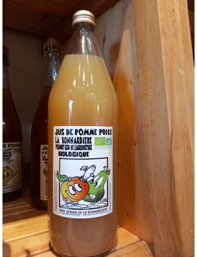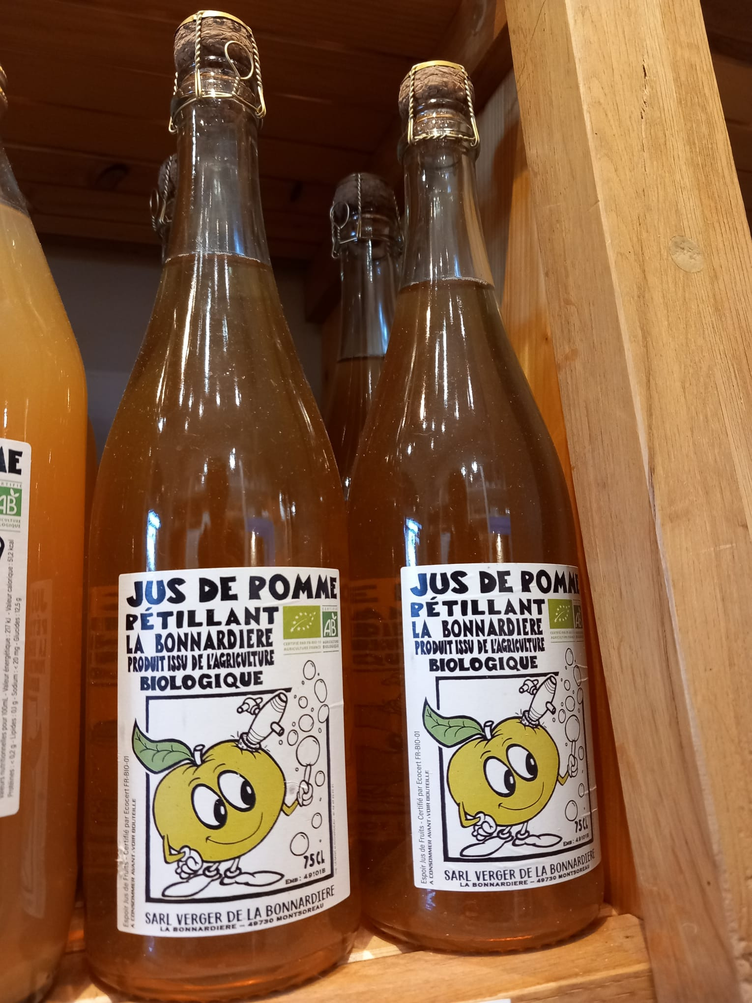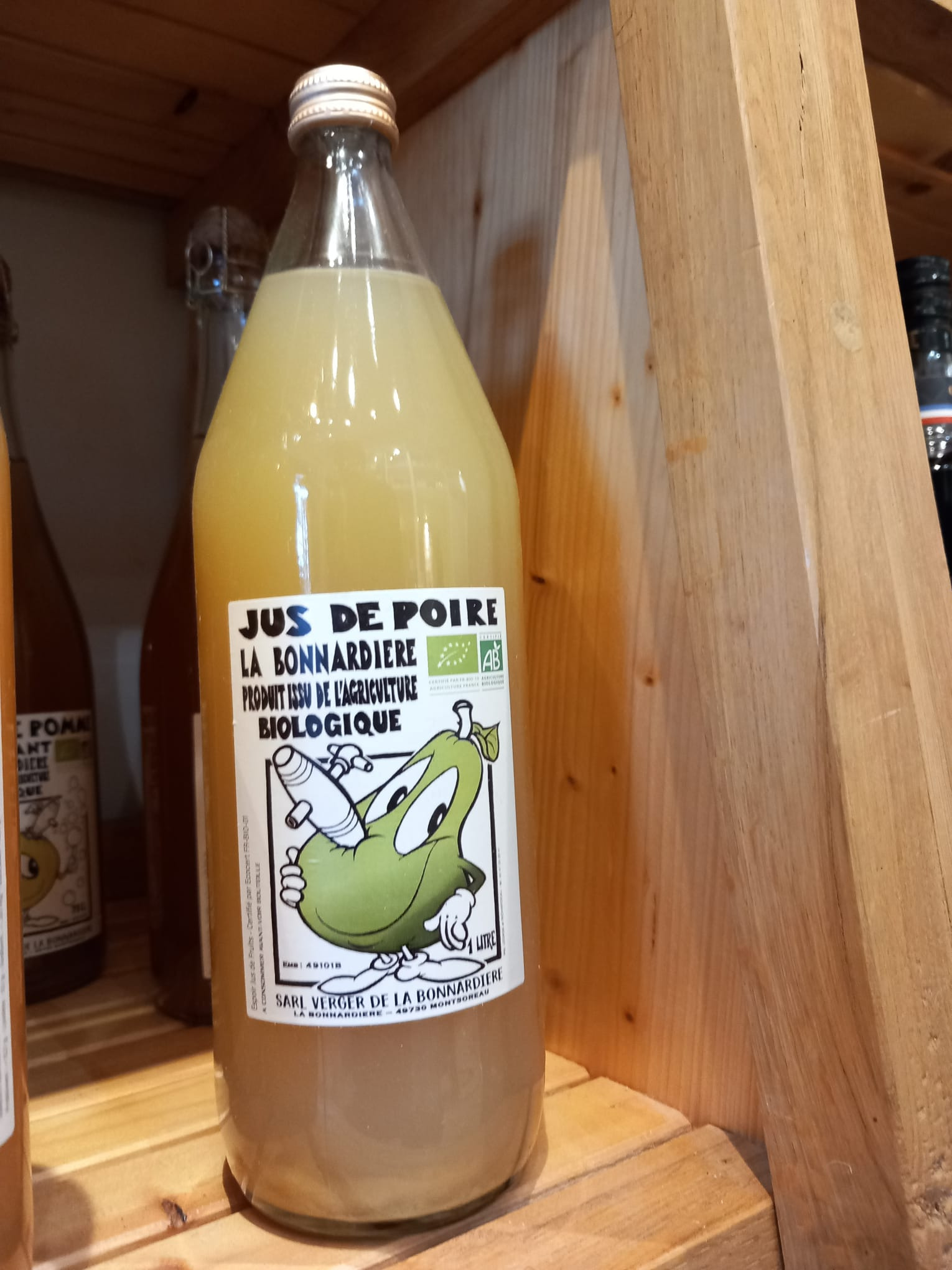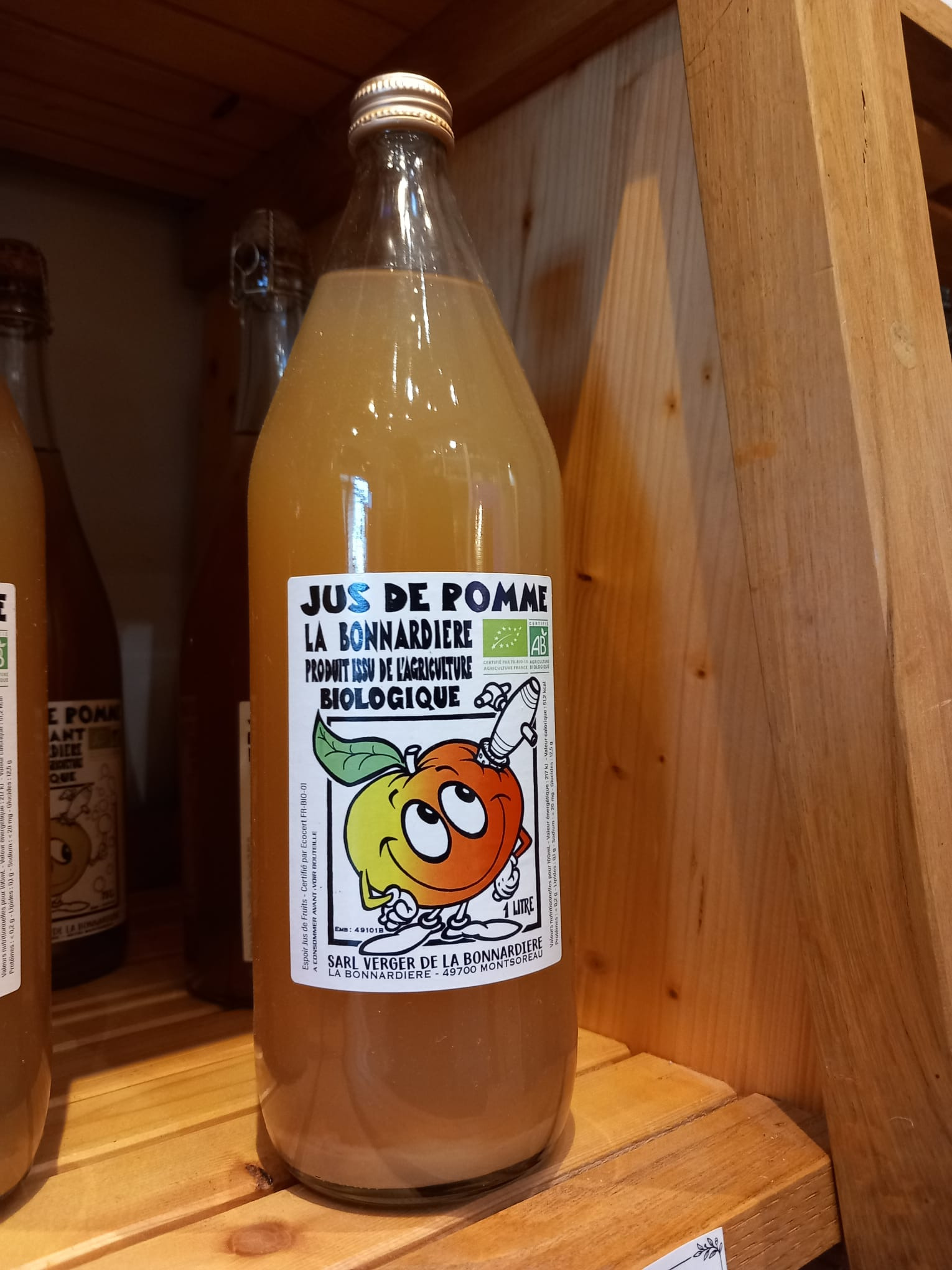 Les jus de fruits BIO produit par les Vergers de la Bonnardière sont des boissons locales, proposées en plusieurs variétés : jus de pomme, jus de poire, jus de pomme-poire, jus de pomme-citron vert, jus de pomme pétillant.
