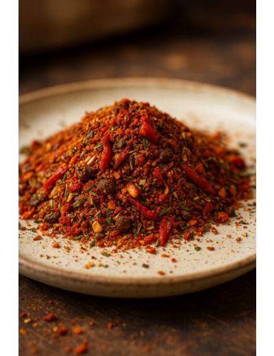 Découvrez le Cajun Authentique – Feu Créole & Épices du Sud, un mélange d'épices qui éveillera vos papilles avec son bouquet de saveurs intenses et exotiques. Sa texture fine et légèrement granuleuse révèle une couleur rougeâtre, évoquant le feu créole qui l'anime. Ses saveurs chaudes et épicées, mariées à la fraîcheur des agrumes et l'arôme délicat de la fleur de sel, en font une véritable invitation au voyage culinaire.