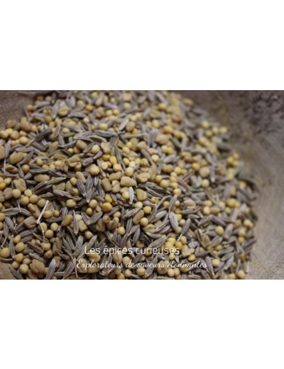Découvrez les Graines à roussir des Épices Curieuses, un mélange unique et savoureux de Cumin, fenugrec et MOUTARDE jaune. Cet assemblage harmonieux vous transporte dans un voyage culinaire riche en saveurs, où chaque grain possède une texture unique et une couleur vibrante. Nos graines à roussir sont spécialement sélectionnées pour leur qualité exceptionnelle, garantissant une expérience gustative incomparable.