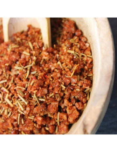 Sel Fou ! est une composition audacieuse et exquise qui invite au voyage des sens. Le mariage du Gros sel de l'île de Ré, du paprika, du romarin, des baies roses et du piment de Cayenne offre une explosion de saveurs, une texture croquante et une couleur d'un rouge profond qui éveillent les papilles.