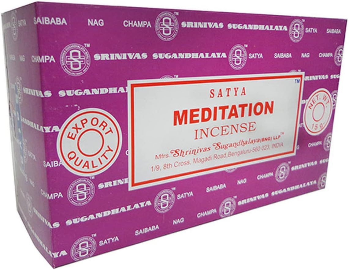 Encens Bâton Satya - Méditation - 15 gr [DESCRIPTION] L'encens bâton Méditation dégage une senteur boisée, enrichie de touches florales. Conçu pour accompagner vos moments de réflexion, il favorise la clarté mentale et l'harmonie émotionnelle. Idéal pour créer une atmosphère apaisante, il vous invite à plonger dans un état de calme profond et de sérénité. ]