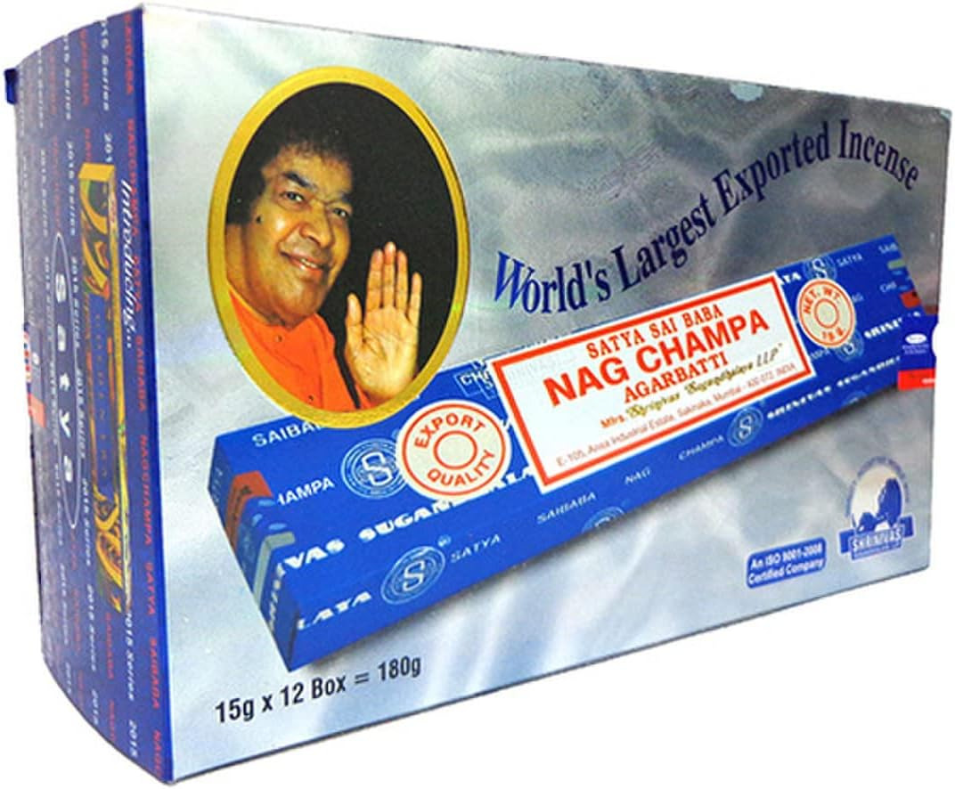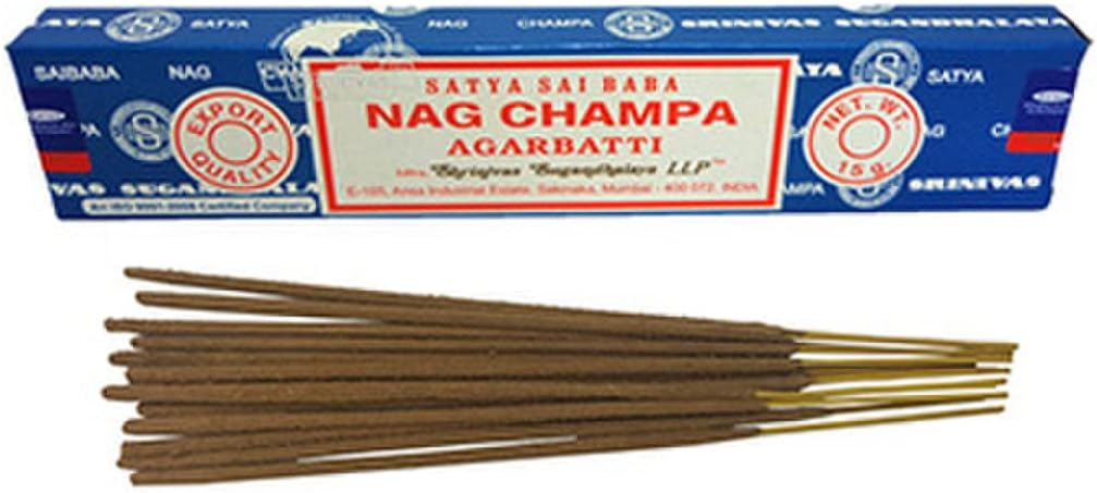 La fameuse boîte bleue est l'encens indien le plus vendu à travers le monde. Le masala du Nag Champa contient 160 produits aromatiques, notamment la fleur jaune d'un arbre de l'Himalaya, le Michelia Champaka, qui lui procure son parfum caractéristique. L'encens au Champaka est traditionnellement utilisé en Inde lors des rituels d'offrande à Ganesh, le dieu à tête d'éléphant. Le Nag Champa aide à la relaxation.
