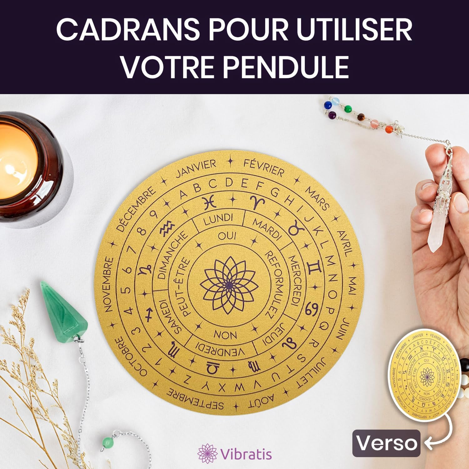 Pour Recharger Pierres et Pendules Divinatoires, Support avec Cadrans et Planche pour Pendule ⌀15 cm, Fabriqué en France