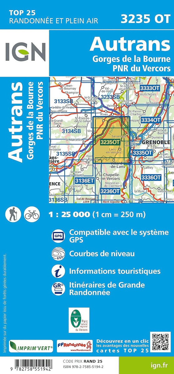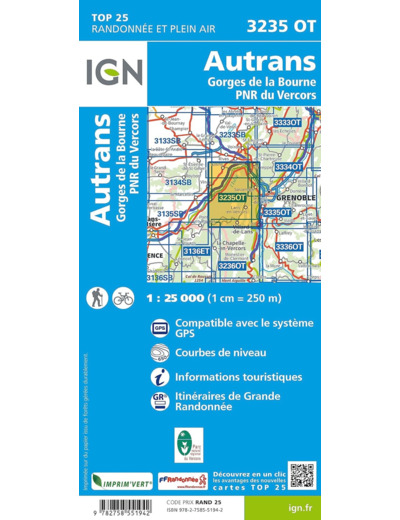 Titre du libre : 3235OT AUTRANS GORGES DE LA BOURNE PNR VERCORS