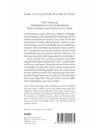 Titre du libre : PETIT MANUEL DE RESISTANCE CONTEMPORAINE - RECITS ET STRATEGIES POUR TRANSFORMER LE MONDE