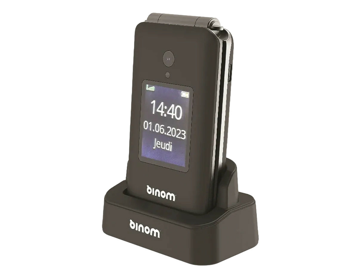✓ téléphone à clapet Binom X3 – simplicité, lisibilité et sécurité au quotidien ✓ touches larges à contraste élevé ✓ écran lumineux et affichage à gros caractères ✓ bouton SOS programmable ✓ socle de charge inclus ✓ autonomie longue durée