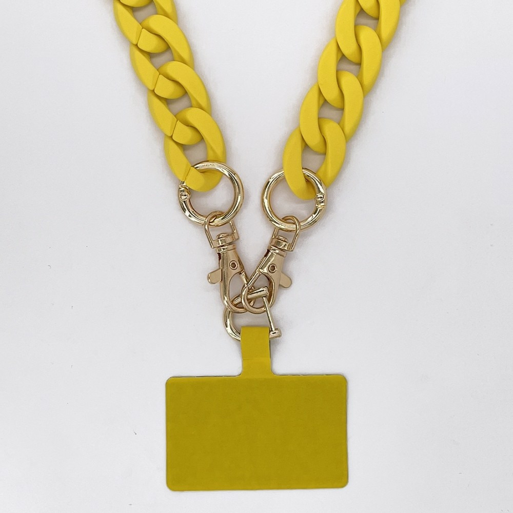 Cette chaine vendu avec un pad universel à placer entre un téléphone et une coque de protection vous permettra de porter votre téléphone comme un sac ou autour du cou tout en gardant les mains libre.