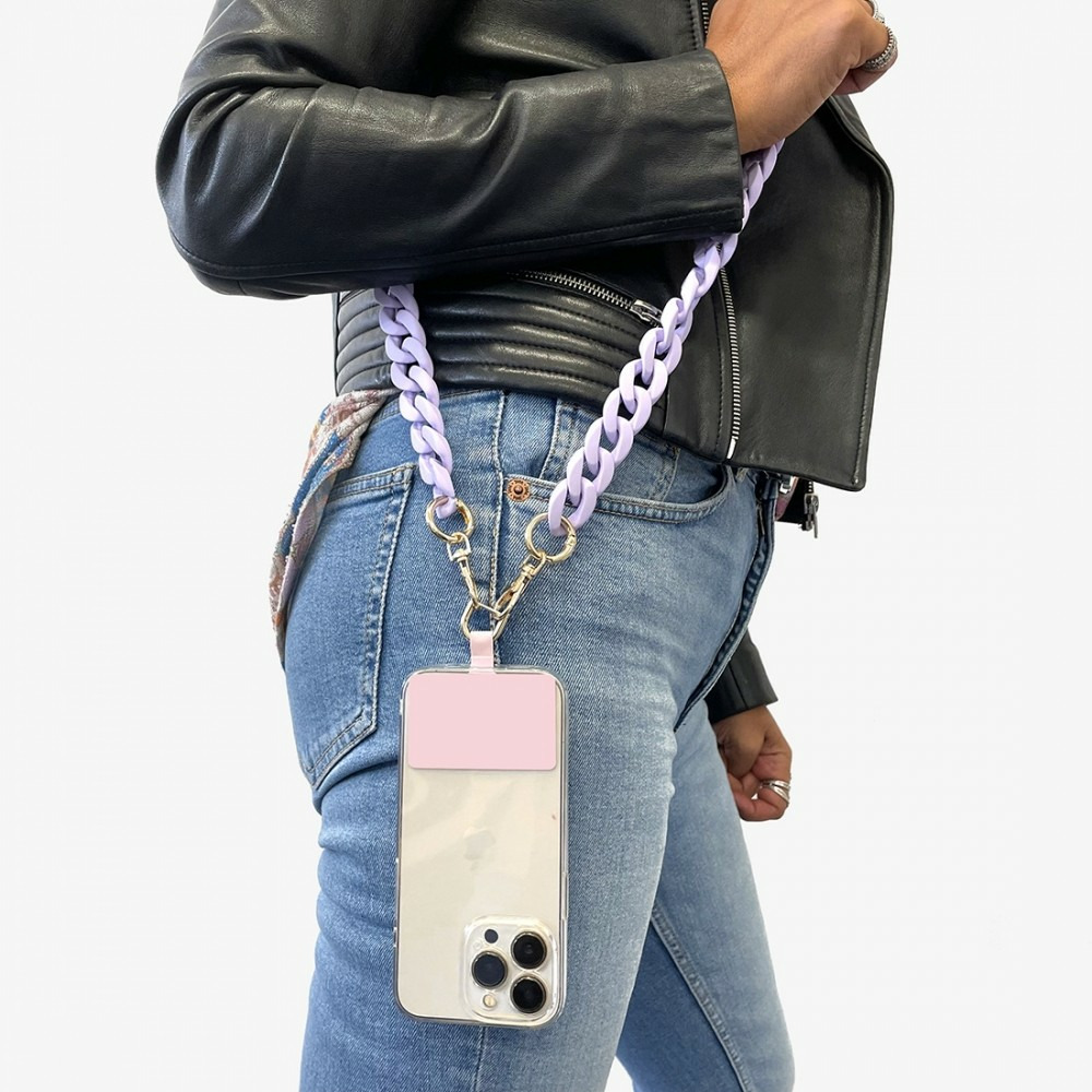 Cette chaine vendu avec un pad universel à placer entre un téléphone et une coque de protection vous permettra de porter votre téléphone comme un sac ou autour du cou tout en gardant les mains libre.