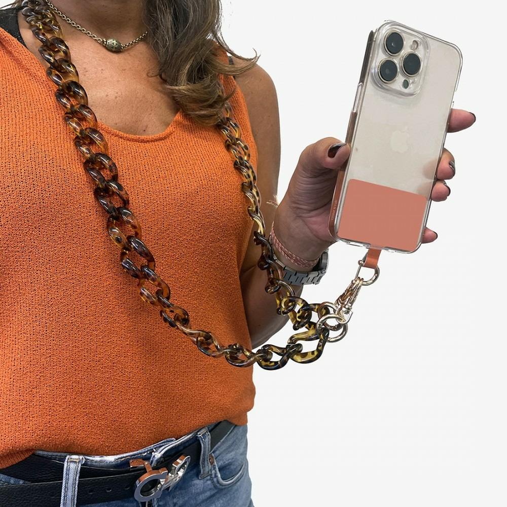 Cette chaine vendu avec un pad universel à placer entre un téléphone et une coque de protection vous permettra de porter votre téléphone comme un sac ou autour du cou tout en gardant les mains libre.