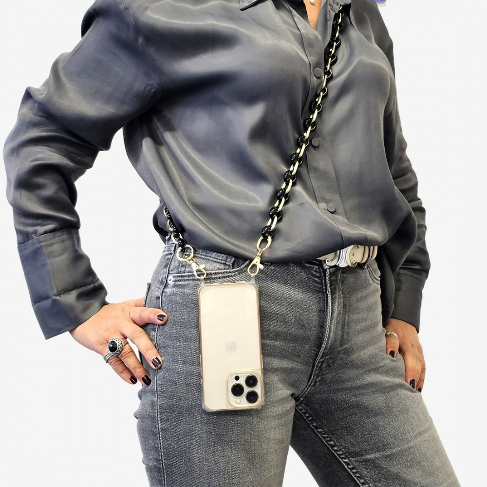 Cette chaine vendu avec un pad universel à placer entre un téléphone et une coque de protection vous permettra de porter votre téléphone comme un sac ou autour du cou tout en gardant les mains libre.