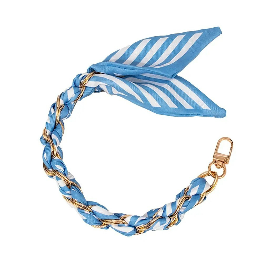Le foulard est confectionné en soie légère, ornée de motifs soigneusement choisis pour une allure raffinée. La chaîne dorée en métal complète harmonieusement ce design, avec une finition premium et durable.