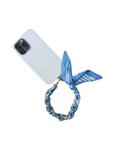 Foulard en soie d’environ 25cm de long, chaîne dorée robuste, compatible avec tous modèles de smartphones (iPhone, Samsung, Xiaomi, etc.) et coques rigides.