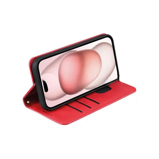 ✓ Protection élégante en simili-cuir pour votre iPhone ✓ Rabat portefeuille pratique avec rangements intégrés ✓ Compatible avec tous les modèles iPhone (7 au 17 Pro Max) ✓ Quatre coloris intemporels : rouge, noir, marron et bleu foncé