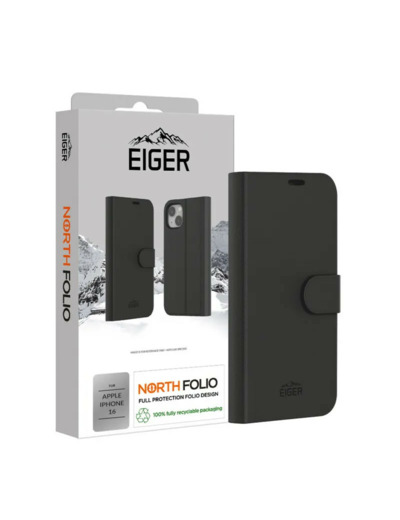 ✓ étui EIGER Folio renforcé iPhone 17, rabat magnétique élégant et protection intégrale ✓ trois emplacements pour cartes + poche à billets intégrés ✓ finition sobre en noir, usage multi-angle grâce au support intégré