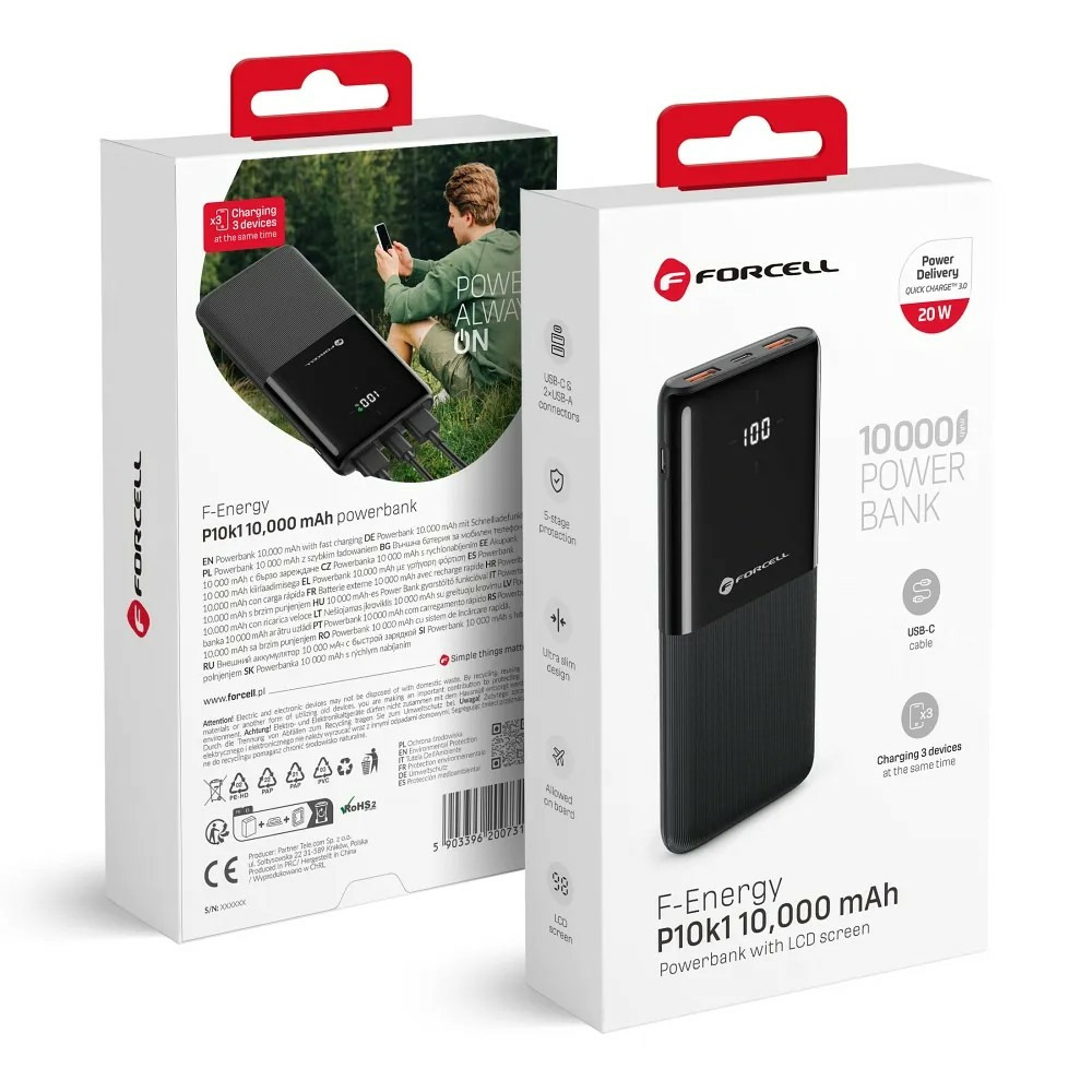 La Forcell F‑ENERGY P10K1 est un powerbank ultra pratique, pensée pour recharger jusqu’à trois appareils simultanément (smartphone, tablette, écouteurs) où que vous soyez.