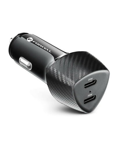 Le Forcell Carbon CC50‑2C est un chargeur voiture performant conçu pour alimenter simultanément deux appareils USB‑C avec 20 W chacun, idéale pour smartphones, tablettes et consoles de jeu portables.