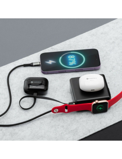 Ce modèle combine un chargeur mural 45 W, une batterie externe 15 000 mAh et un module de charge sans fil compatible MagSafe et Apple Watch, le tout dans un boîtier compact conçu pour les voyageurs.