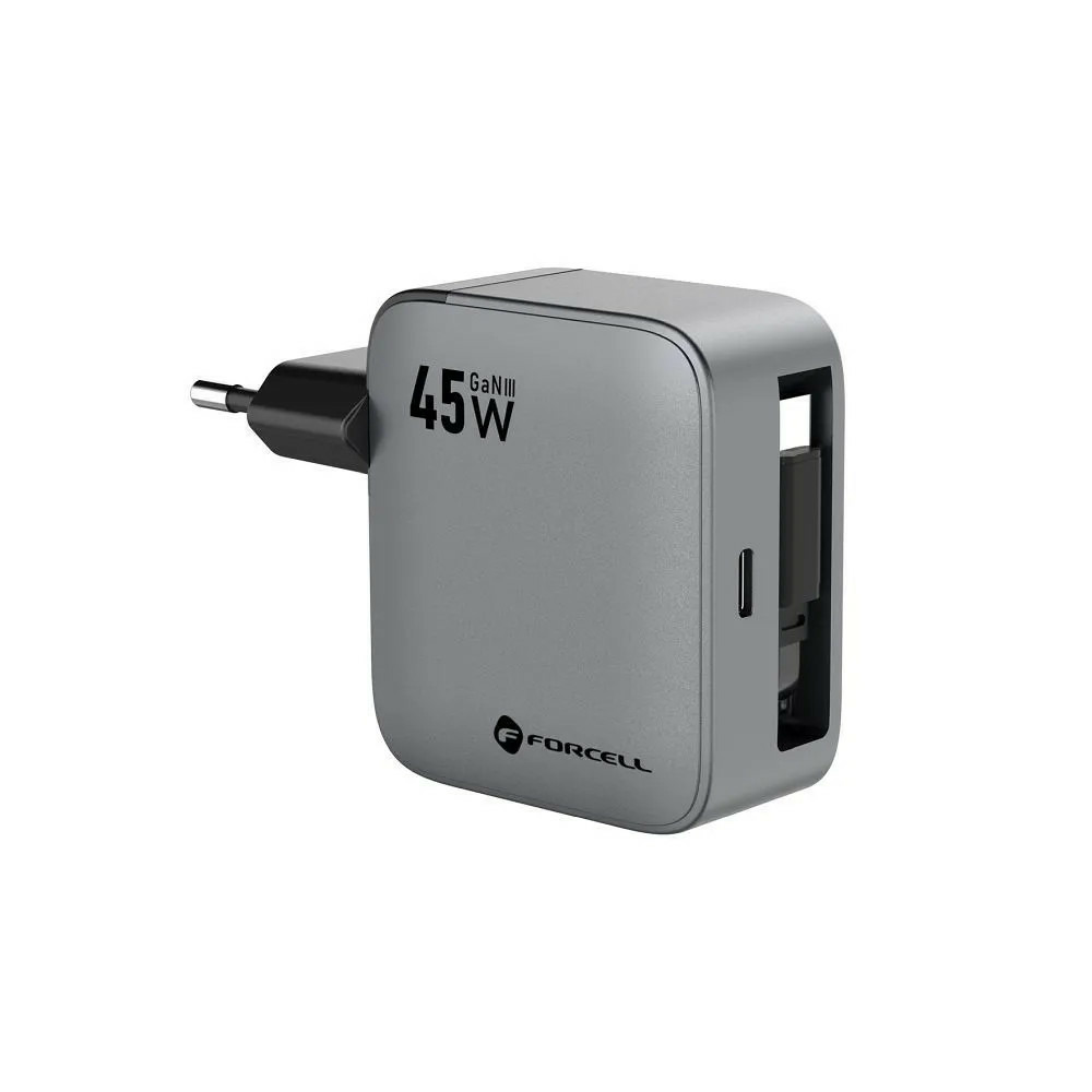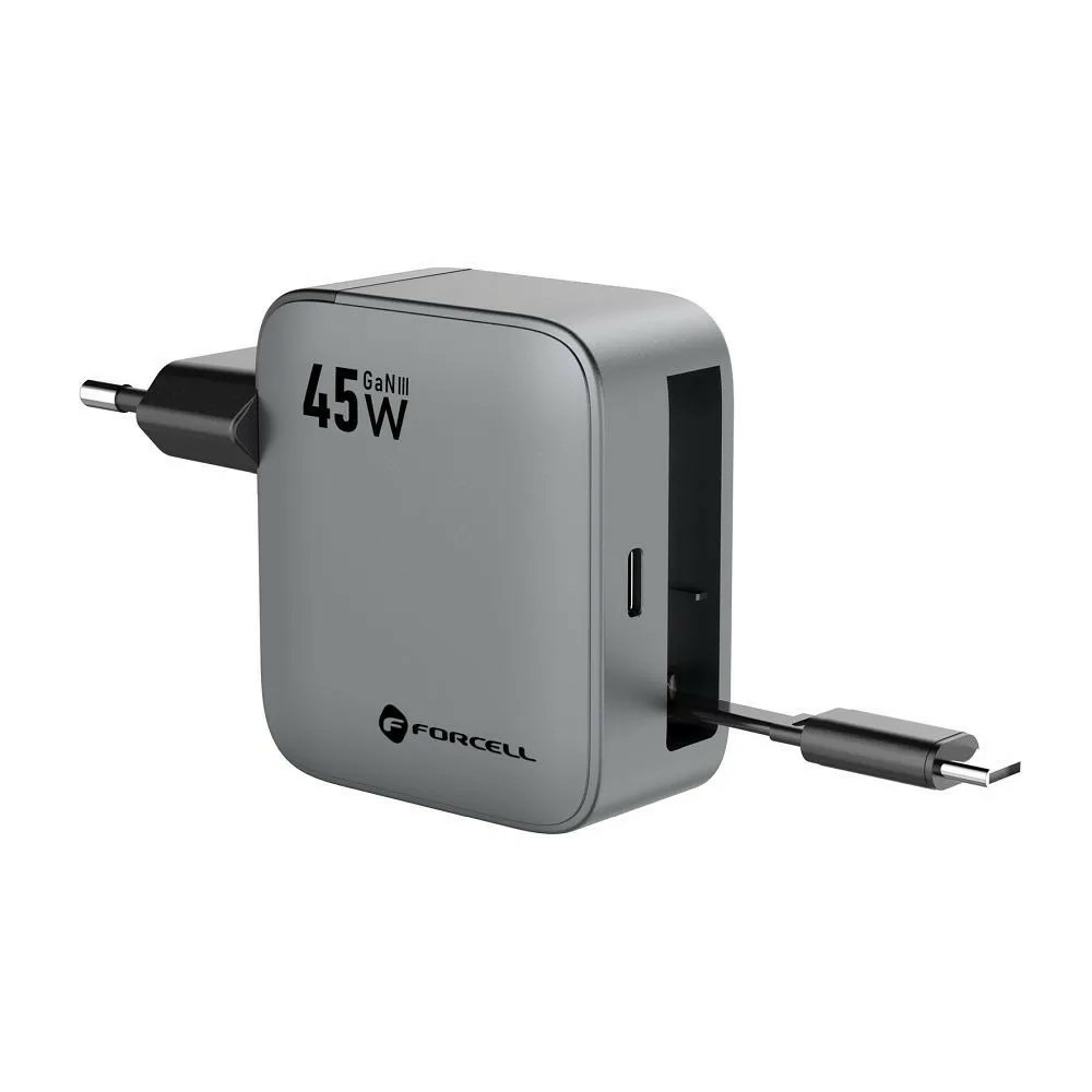 Le FORCELL F-Energy Chargeur mural 45 W délivre une charge efficace via USB-C compatible Power Delivery et Quick Charge 4.0, le tout avec un câble USB-C intégré qui évite le chaos des câbles embêtants.