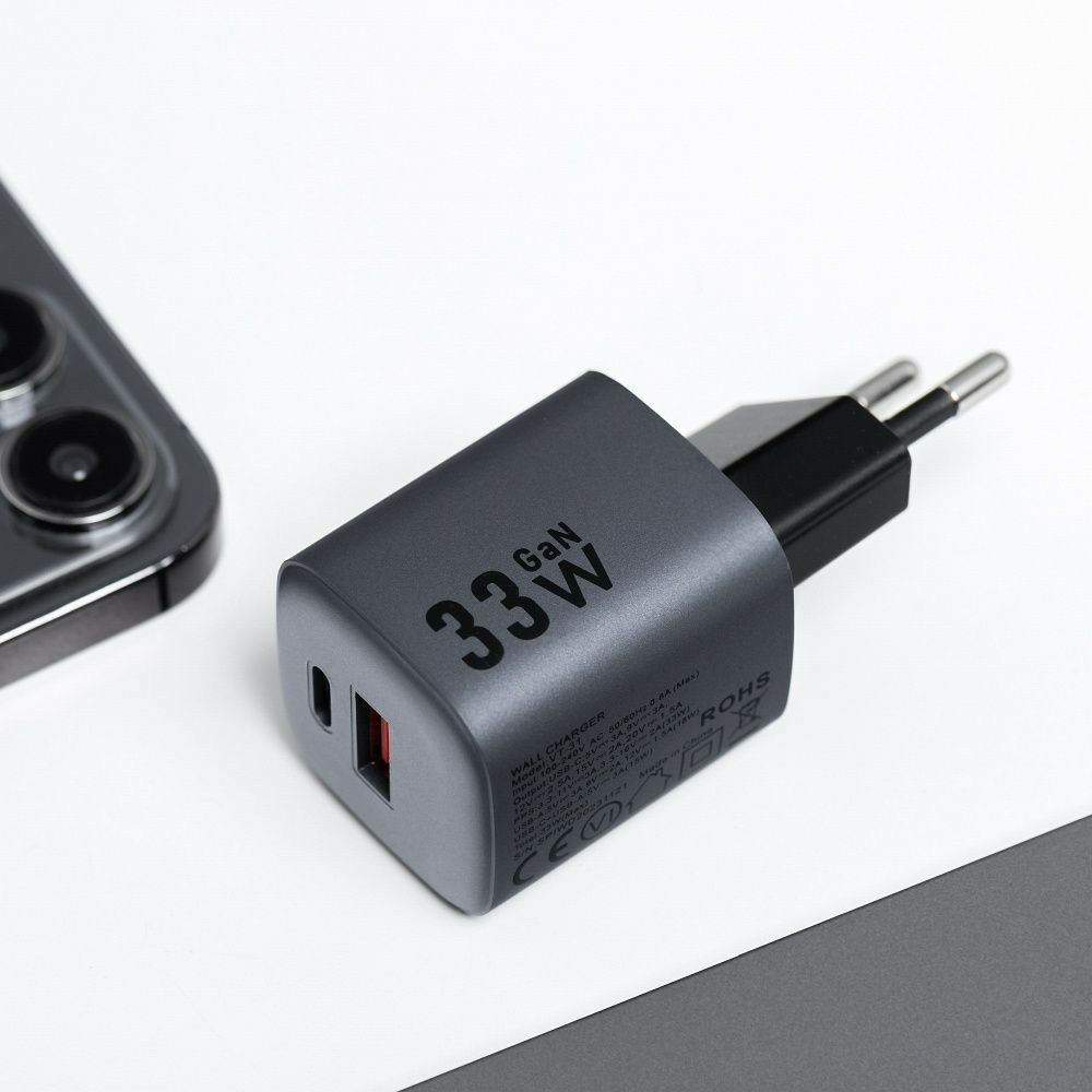 Grâce à la technologie GaN III, ce chargeur libère une puissance élevée (jusqu’à 33 W), avec des pertes thermiques réduites et un gabarit compact. Il supporte la recharge rapide Power Delivery ainsi que le Quick Charge 4.0 via son port USB‑A.