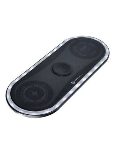 La Forcell F‑ENERGY Ellipse 3‑en‑1 est une station à induction au design élégant, capable de charger simultanément un smartphone, une montre et des écouteurs compatibles Qi. Sa finesse et sa portabilité en font un équipement pratique pour le bureau ou la table de nuit.