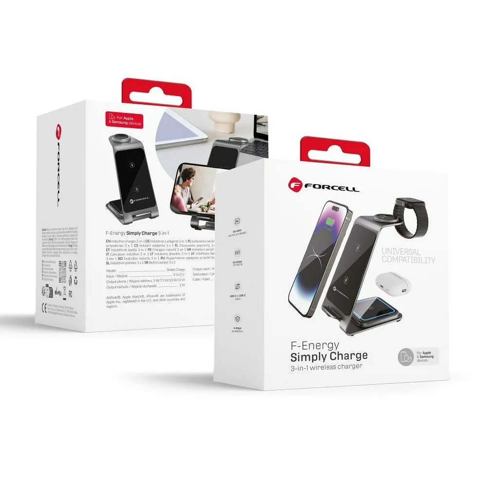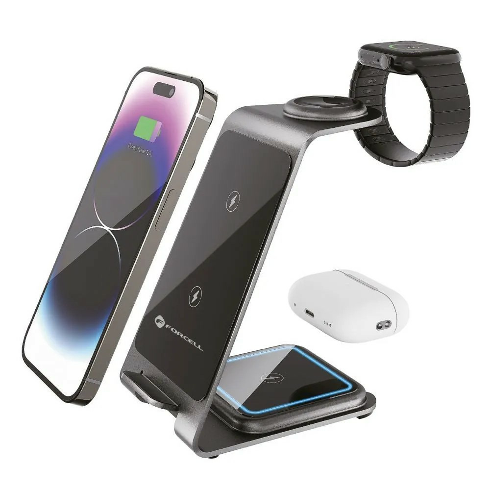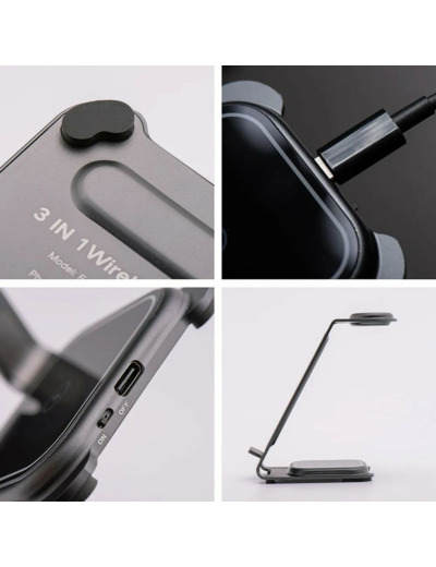 ✓ prend en charge 3 appareils simultanément : montre connectée, smartphone & écouteurs TWS ✓ puissance jusqu’à 15 W (smartphone) + 2–2,5 W pour montre & écouteurs, compatible Qi ✓ coque aluminium élégante & compacte, livrée avec câble USB‑C de 150 cm ✓ protections multiples : contre la surchauffe, surtension, surcharge et court‑circuit ✓ compatible Apple Watch, Samsung Watch et tous appareils compatibles Qi, AirPods inclus