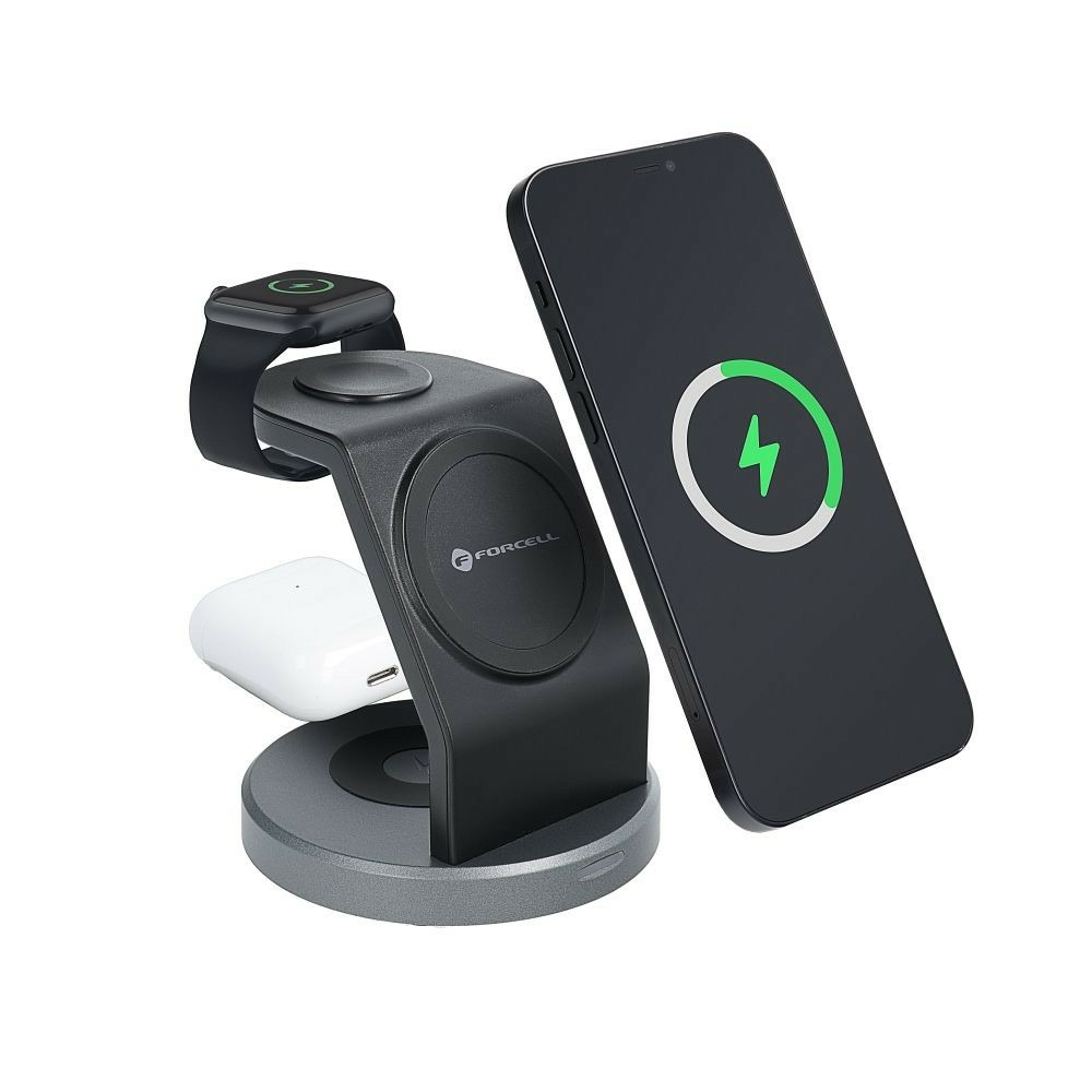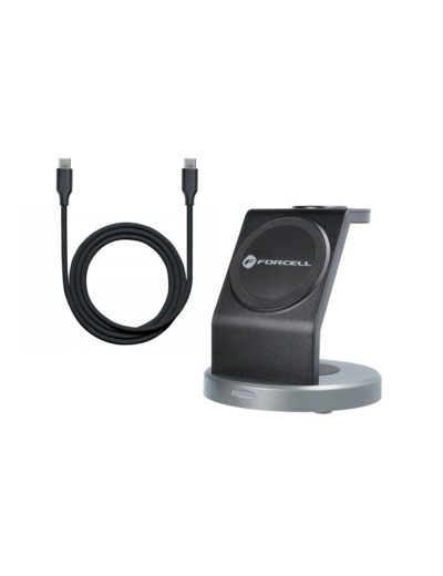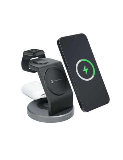 La FORCELL Solid Mag Charger est une station magnétique polyvalente, combinant MagSafe® et Qi, pensée pour charger simultanément votre iPhone, vos TWS et votre Apple Watch. Son design raffiné en noir mat s’intègre parfaitement dans n’importe quel environnement.