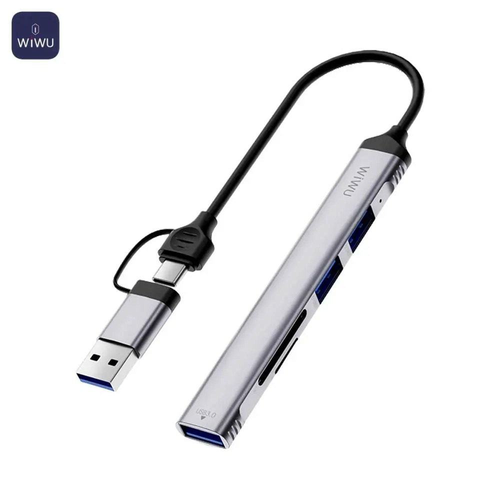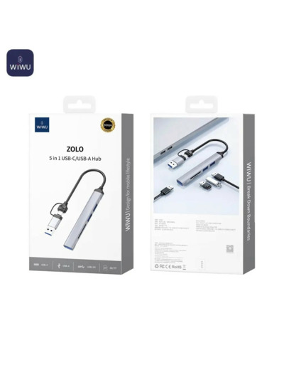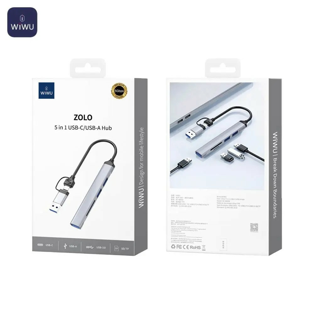 Hub Wiwu ZOLO Wi-HB003 5 en 1 Type-C & USB Gris – Connectivité professionnelle et polyvalence