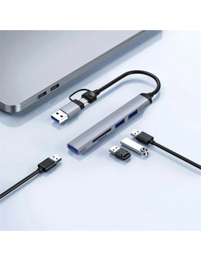 Le Hub Wiwu ZOLO Wi-HB003 5 en 1 Type-C & USB Gris est une solution idéale pour les utilisateurs à la recherche d'une connectivité fiable et étendue. Ce hub transforme un appareil portable en une station de travail mobile, offrant une lecture simultanée des cartes SD et TF, des ports USB 2.0 et un port USB 3.0 pour des transferts de données ultra-rapides, ainsi qu’un adaptateur A-C inclus pour une compatibilité maximale.