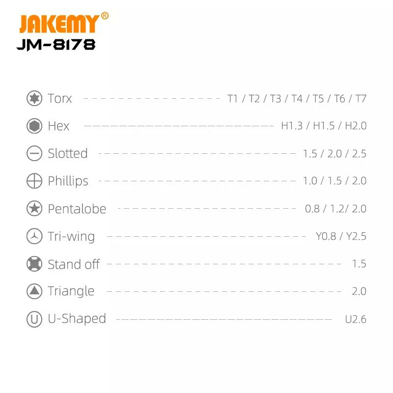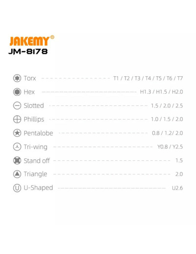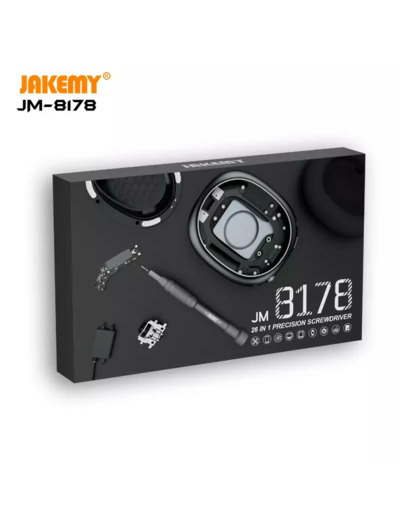 ✓ kit JAKEMY JM-8178 26-en-1 — précision, solidité et portabilité dans un format compact ✓ embouts CR-V haute dureté, poignée aluminium antidérapante, boîtier facile à emporter ✓ parfait pour la réparation d’iPhone, iPad, MacBook, montres, ordinateurs et objets connectés