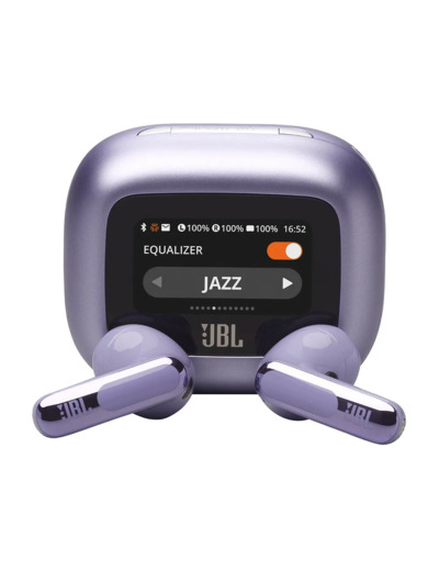 L’étui de recharge intègre un écran tactile permettant de contrôler les fonctions clés de l’application JBL Headphones sans sortir le smartphone, tout en offrant jusqu’à 50 heures d’écoute sans fil selon l’utilisation.