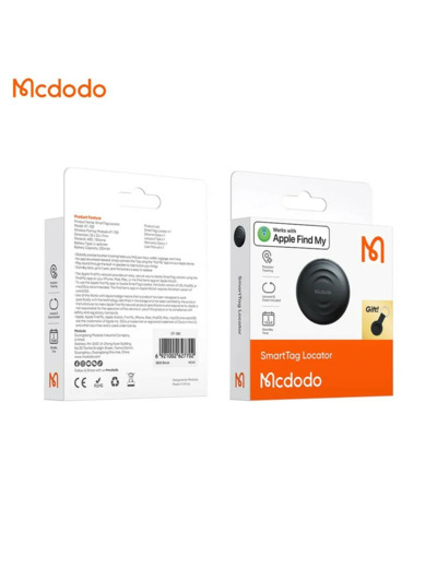 ✓ traceur GPS MCDODO AT‑7201, compatible réseau Apple Find My ✓ batterie remplaçable 230 mAh, veille jusqu’à 1 an ✓ mini format 32 × 32 × 7 mm, léger (≈ 8 g) ✓ connectivité Bluetooth 5.2, étanchéité IPX4 ✓ émet un signal sonore & alerte hors zone via Find My ✓ livré avec coque en silicone et lanière