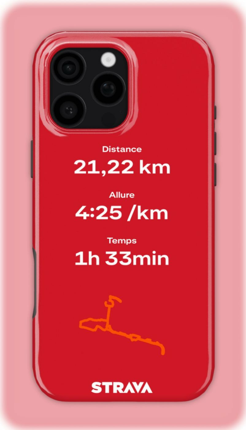 Coque 3D 2en1 Ultra-résistante avec Mon Run Strava Rouge personnalisable 🏃 dès 19,90€ chez Macavenue 🔥 Impression par sublimation haut de gamme en France 🔵⚪️🔴 le jour même 🚀 Livraison rapide ✓ Compatible iPhone & Samsung 📱 Anti-chocs 🛡️ Anti-décoloration ☀️ Design immersif ✨ Quantités limitées ⚠️
