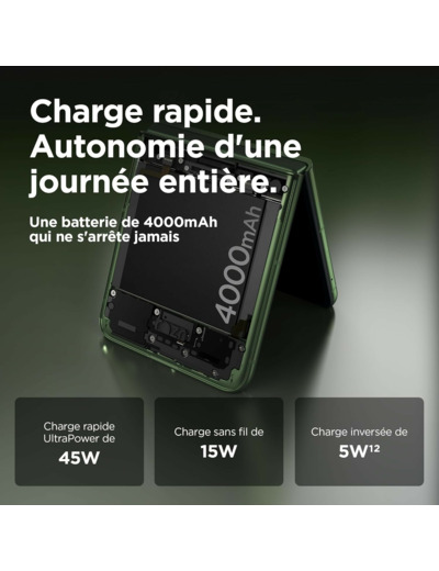 Sa batterie de 4000 mAh assure une journée complète d’utilisation, et sa charge rapide 45W permet de regagner de l’autonomie en un clin d'œil.