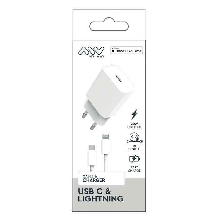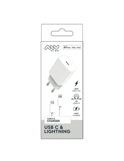 MYWAY PACK CHARGEUR SECTEUR PD 20W + USB-C LIGHTNING BLANC
