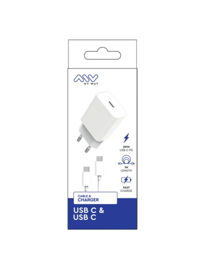MYWAY PACK CHARGEUR SECTEUR PD 20W + USB-C USB-C BLANC