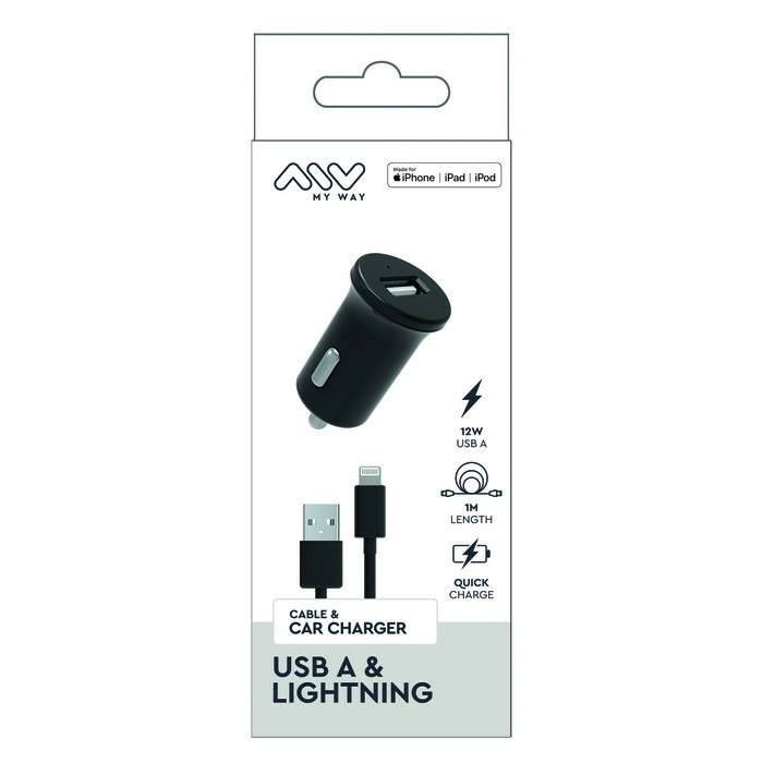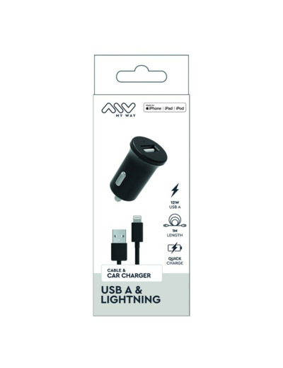MYWAY PACK CHARGEUR VOITURE 12W + USB-A LIGHTNING NOIR