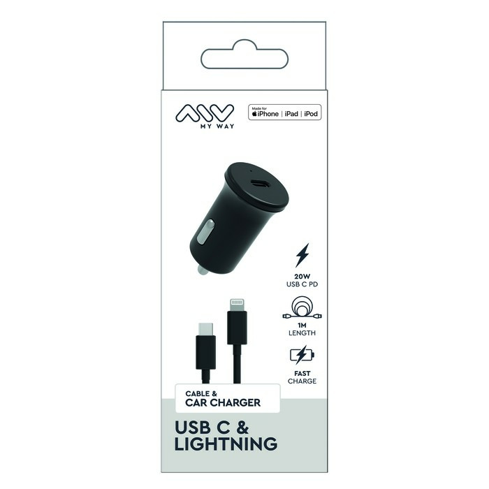 MYWAY PACK CHARGEUR VOITURE PD 20W + USB-C LIGHTNING NOIR